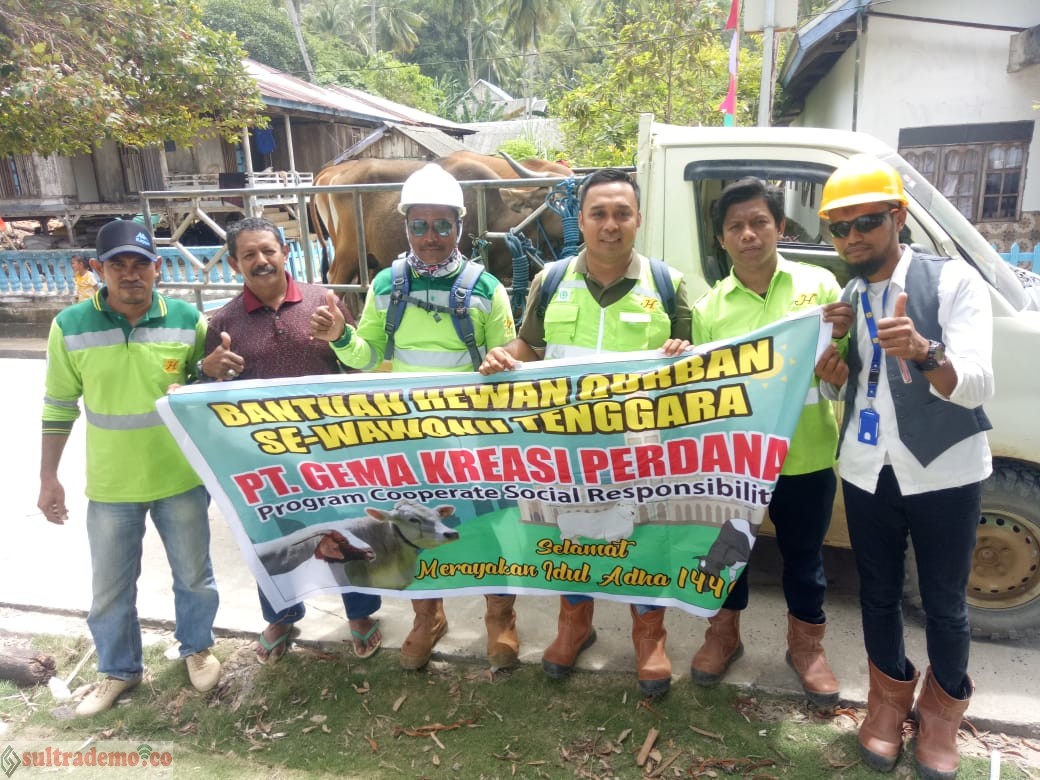 KONKEP, Sultrademo.co – 14 desa dan satu kelurahan di Kecamatan Wawonii Tenggara dapat bantuan daging kurban dari PT Gema Kreasi Perdana (GKP).