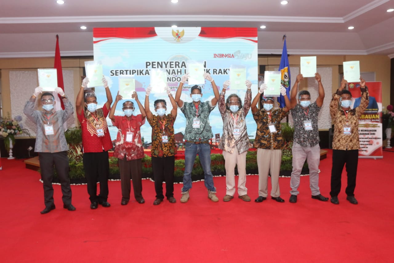 Menteri Agraria dan Tata Ruang/Badan Pertanahan Nasional (ATR/BPR) Sofyan Djalil dalam sambutannya mengungkapkan, pembagian sertifikat tanah adalah bagian dari stimulus dalam rangka meningkatkan ekonomi masyarakat di tengah pandemi Covid-19. Karena dengan sertifikat masyarakat berkesempatan mendapatkan akses permodalan, di samping adanya kepastian hukum atas tanah mereka.