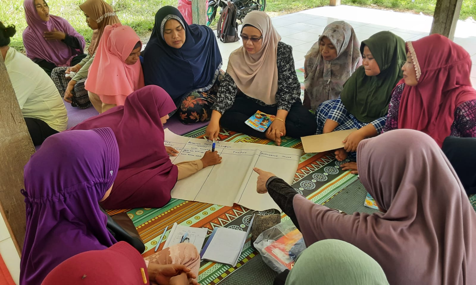 Dalam pelatihan ini, mereka diberikan pengetahuan tentang gender dan bagaimana membuat perencanaan usaha atau ide bisnis yang bisa mereka jalankan, baik usaha secara berkelompok maupun usaha perorangan (keluarga).
