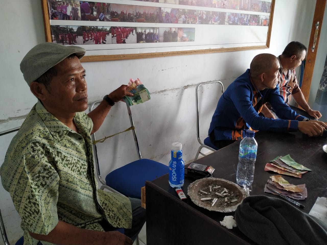 Penangkapan ketiga tersangka bermula saat aparat kepolisian mendapat informasi seringnya terjadi perjudian di Kantor Kecamatan Wonggeduku Barat. Dan alhasil tiga tersangka dipergoki polisi sedang asyik bermain judi.