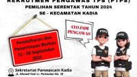 Pengumuman Pendaftaran Pengawas Tempat Pemungutan Suara (PTPS) se-Kecamatan Kadia untuk Pilkada 2024