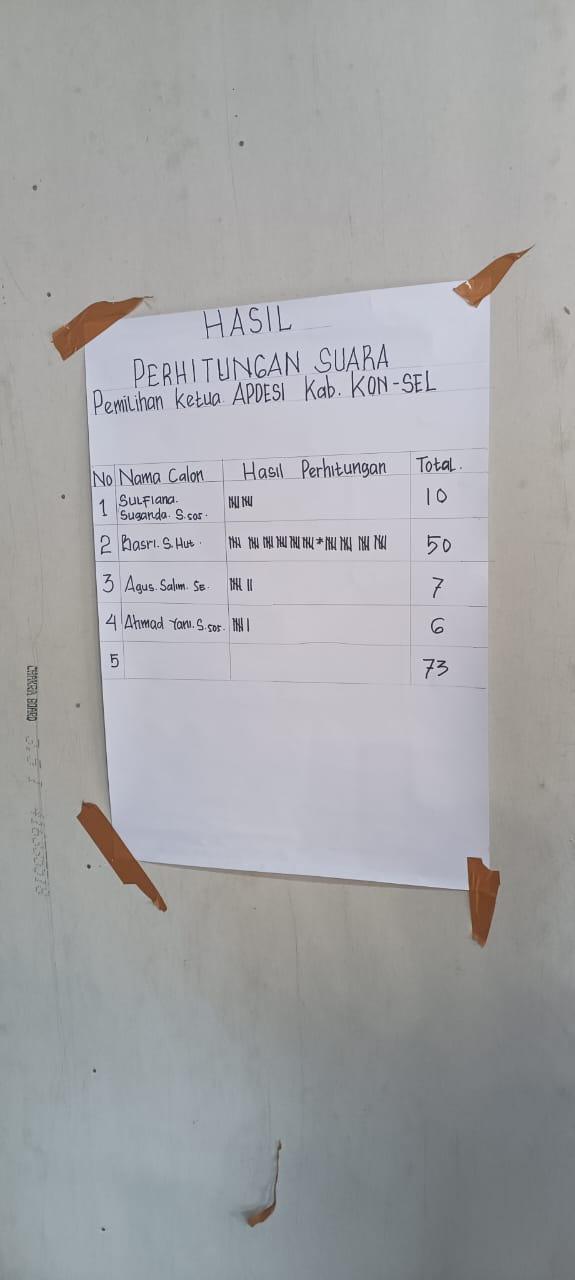 Total suara sah tercatat sebanyak 73 suara. Dengan selisih suara signifikan, Basri memastikan diri sebagai nakhoda baru APDESI Konsel.