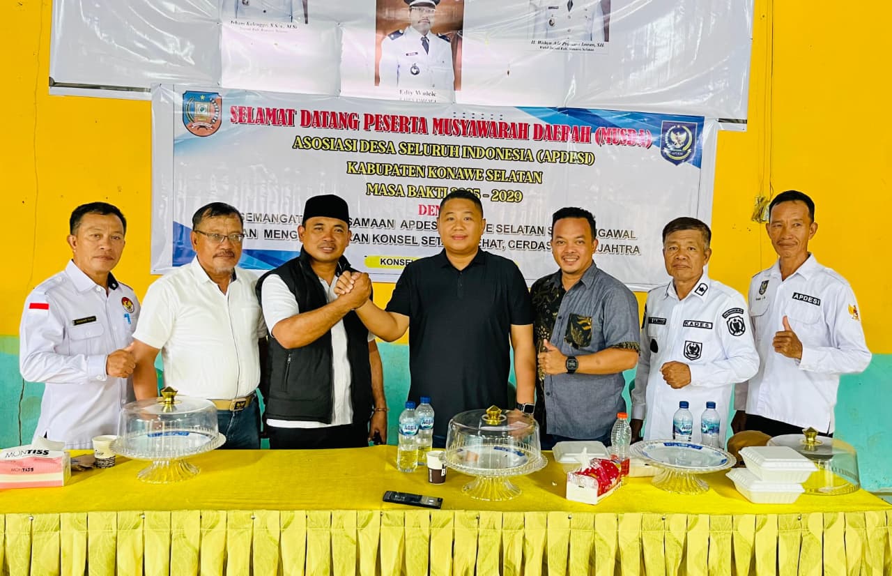 Sultrademo.co, Konawe Selatan — Basri S.Hut resmi terpilih sebagai Ketua Dewan Pimpinan Cabang (DPC) Asosiasi Pemerintah Desa Seluruh Indonesia (APDESI) Kabupaten Konawe Selatan, Sulawesi Tenggara, untuk periode 2025–2029. Basri yang juga menjabat sebagai Kepala Desa Pewutaa, Kecamatan Angata, terpilih dalam Musyawarah Daerah APDESI Konsel yang berlangsung dengan tema “Semangat Kebersamaan, APDESI Konawe Selatan Siap Mengawal dan Mensukseskan Konsel Setara: Sehat, Cerdas, dan Sejahtera.”