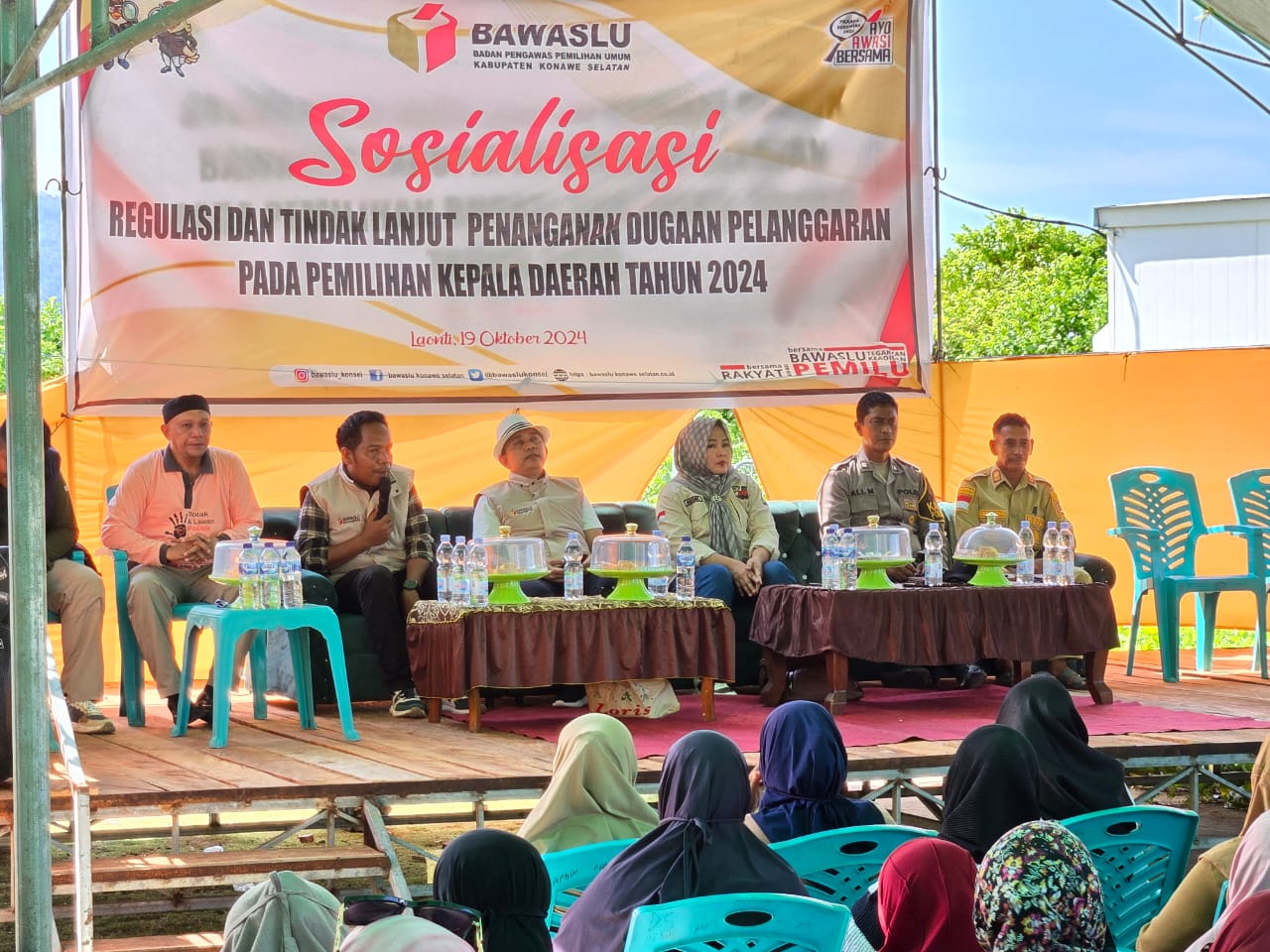 Sosialisasi yang dihadiri oleh Ketua Bawaslu Konsel, Siambu, serta anggota Hasni dan Bahrun Musu, juga mengundang Munsir Salam, mantan anggota Bawaslu Sultra periode 2018-2023, dan Koordinator Presidium Sultra Demo Konsel, Awaluddin Ak, sebagai narasumber.