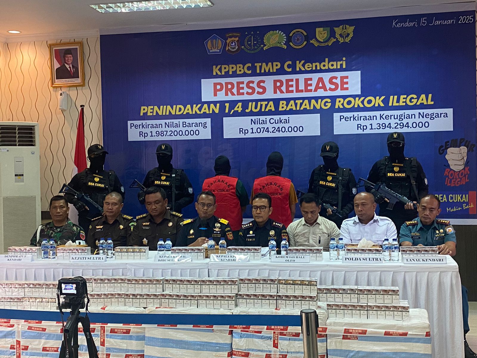 “Petugas segera menghentikan proses bongkar muat dan memeriksa isi kontainer. Dari hasil pemeriksaan, ditemukan 60 karton berisi 1,4 juta batang rokok ilegal yang kemudian diamankan ke Kantor Bea Cukai Kendari,” jelas Tonny.