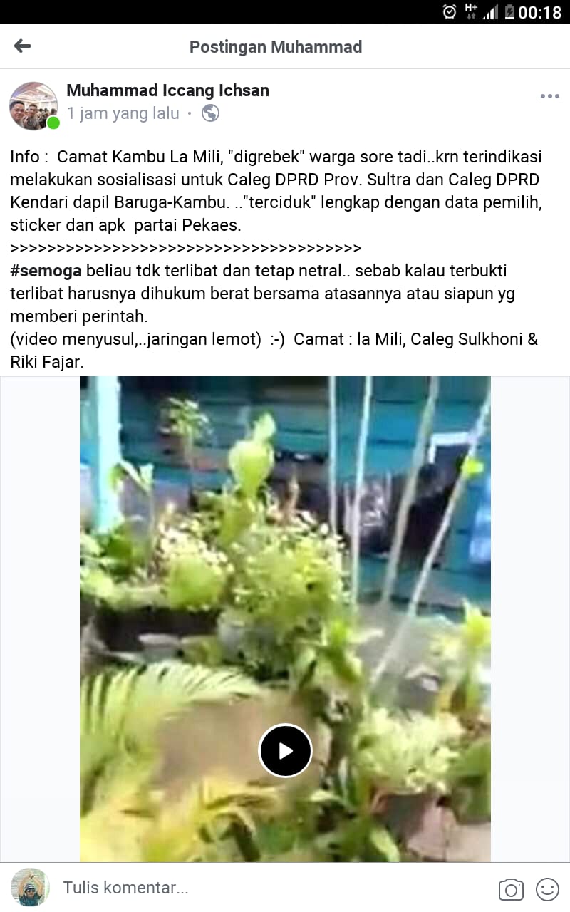 Sulkhani sendiri adalah Caleg Provinsi Sultra Dapil Kota Kendari, Sementara Riki Fajar adalah caleg Kota Kendari.
