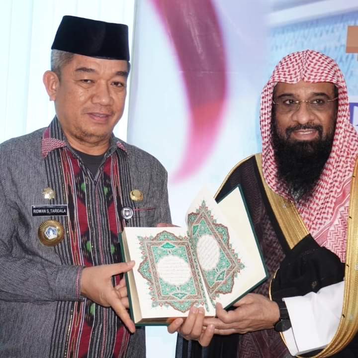 Pada akhir kegiatan, Syaikh Ahmad Bin Essa Al Hazimi memberikan cinderamata berupa Al-Qur’an bertinta emas kepada Sekda Kota Kendari sebagai simbol persahabatan dan penghormatan.