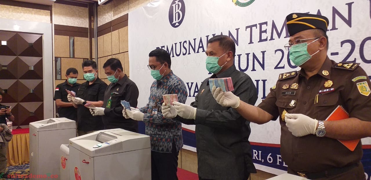 Kendari, Sultrademo.co – Kantor Perwakilan Bank Indonesia Sulawesi Tenggara (Sultra) bersama Kepolisian Daerah (Polda,) BIN dan Kejasaan Tinggi (Kejati) musnahkan 340 lembar uang palsu, Kamis (6/2/2020) di salah satu hotel di Kota Kendari.