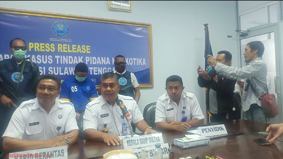 Kendari, sultrademo.co – Badan Narkotika Nasional Provinsi Sulawesi Tenggara (BNNP Sultra mengamankan seorang laki-laki inisial BR(35) Wiraswasta di Sodohoa, Kendari Barat terduga pengedar/pengguna obat terlarang, penangkapan BR disertai dengan obat terlarang jenis shabu seberat 1,17 Kg dan barang bukti lainnya.