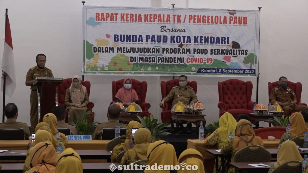 Kendari, Sultrademo.co – Rapat Kerja yang diikuti Kepala TK/Pengelola PAUD bersama Bunda PAUD Kota Kendari secara resmi dibuka oleh Wali Kota Kendari H. Sulkarnain K.Rabu (8/9/2020).