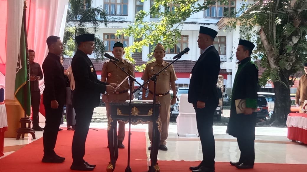 Prosesi pengambilan sumpah jabatan dilakukan dengan menggunakan Al-Qur’an sebagai bentuk penegasan tanggung jawab moral dan spiritual dalam menjalankan amanah.