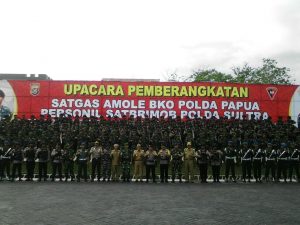 Polda Sultra Berangkatkan 201 Personil Satbrimob Satgas Amole BKO di Papua
