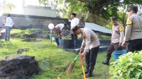 Meriahkan Idul Adha 1444 H, Personel Polres Baubau Bersih-Bersih di Masjid Kraton