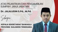 Kendari, Sultrademo.co – Badan Pengawas Pemilu (Bawaslu) Republik Indonesia resmi melantik Dr. Jalaludin sebagai Kepala ….