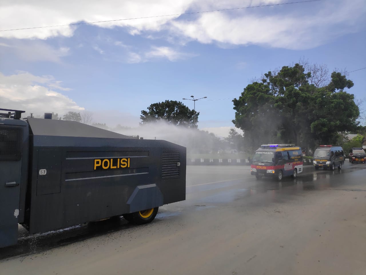 Penyemprotan disinfektan tersebut merupakan salah satu upaya Polda Sultra bersama pemerintah daerah untuk mencegah dan memotong rantai penyebaran wabah Virus Corona atau yang biasa disebut Covid-19 di Kota Kendari.