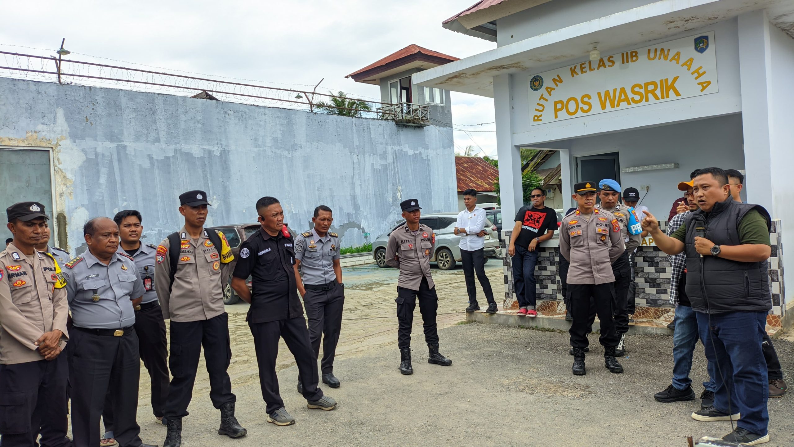Kepala Rutan Kelas IIB Unaaha, Hery Subandono, menerima massa aksi dan mengajak perwakilan demonstran berdialog untuk memberikan penjelasan terkait insiden tersebut.