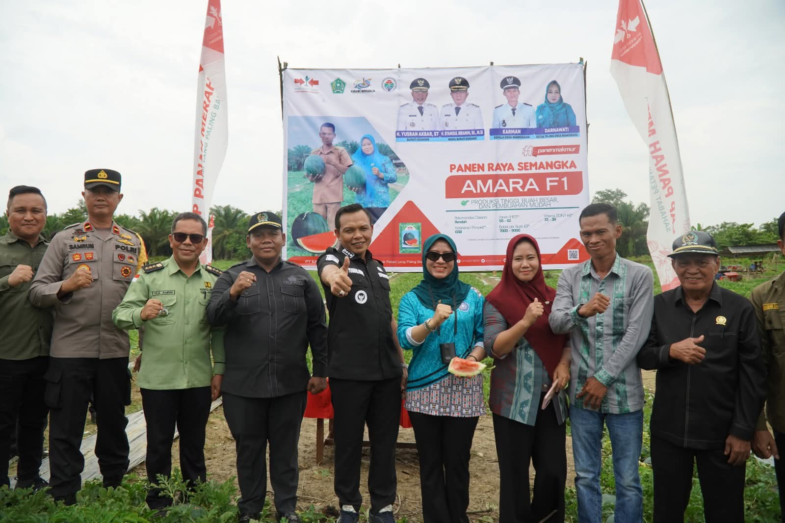 Bupati Konawe, H. Yusran Akbar, ST, tidak datang dengan setelan jas formal yang kaku. Mengenakan pakaian lapangan yang praktis, ia melangkah mantap di antara bedengan lahan, membuktikan bahwa kepemimpinan di era baru Konawe adalah kepemimpinan yang berani mengotori tangan. Bersama Ketua DPRD dan jajaran pejabat teras daerah, Yusran memimpin prosesi panen raya semangka, sebuah komoditas yang kini mulai menjelma menjadi “emas hijau” baru bagi masyarakat Lambuya.
