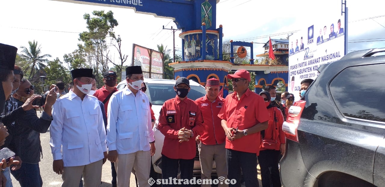 Pantauan awak Sultrademo.co, Ketua DPD PDIP Sultra, H. Lukman Abunawas menghadiri deklarasi yang di sambut oleh ribuan pendukung SBM serta disambut dengan tarian mondotambe yang merupakan salah satu tarian Suku Tolaki. Kamis (27/8/2020).