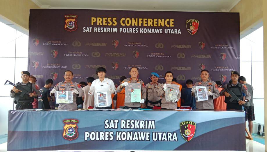 Konawe Utara, sultrademo.co– Sat Reskrim Polres Kabupaten Konawe Utara(Konut), Provinsi Sulawesi Tenggara (Sultra) menggelar pers release terkait tindak pidana sepanjang bulan Juli 2023 di Mako Polres Konawe Utara. Senin, 30/07/2023