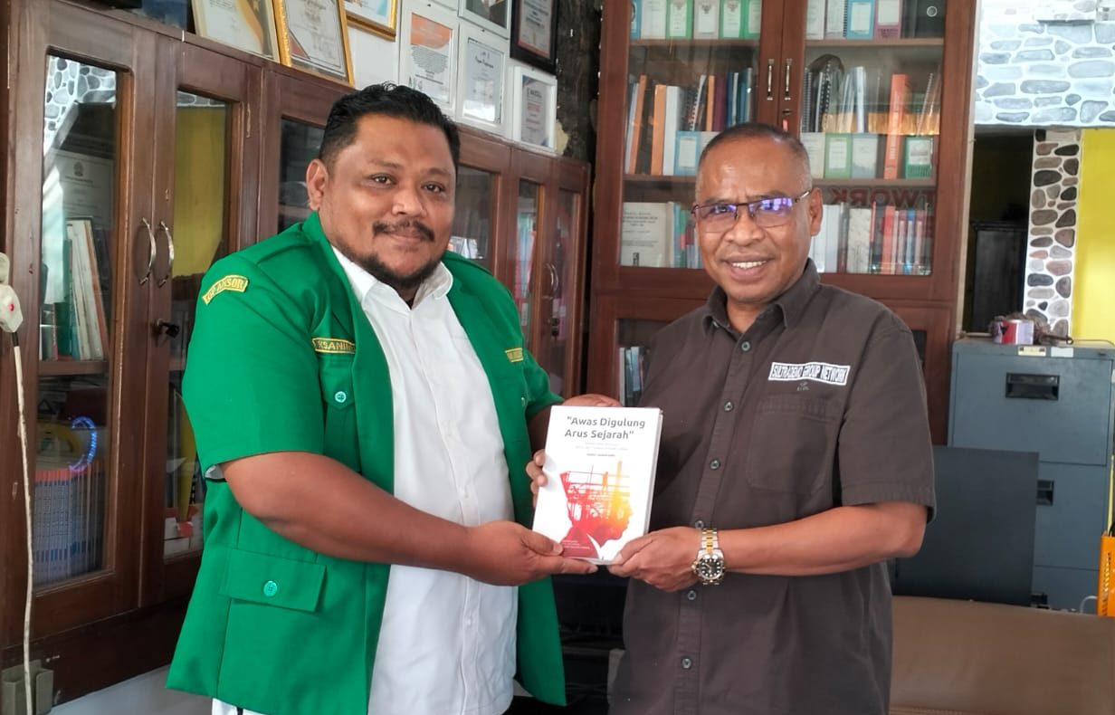 Di akhir kunjungan, Ketua PW Ansor Sultra, Saninuh Kasim, secara langsung menyerahkan buku berjudul “Awas Digulung Arus Sejarah” karya Ketua Umum Pimpinan Pusat GP Ansor, Addin Jauharudin, kepada Komisaris Utama Sultrademo.co, Arafat.