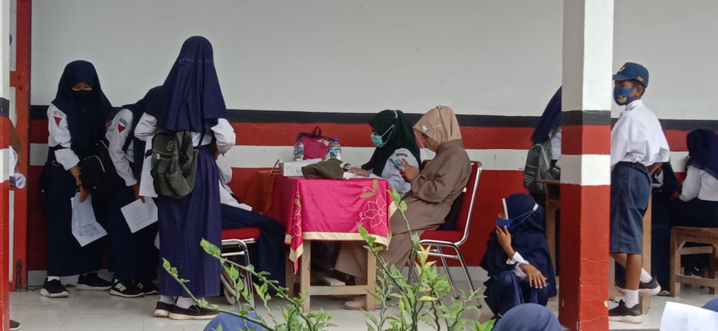 Vaksinasi hari ini untuk SMPN 4 Buteng sebenarnya dijadwalkan dari tanggal 15 – 18 September 2021.