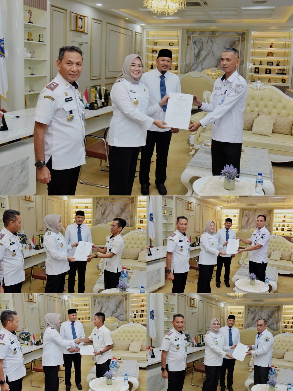 Penyerahan SK dilakukan di ruang kerja Wali Kota, didampingi oleh Wakil Wali Kota, Pj Sekda, dan Kepala Dinas Kesehatan.