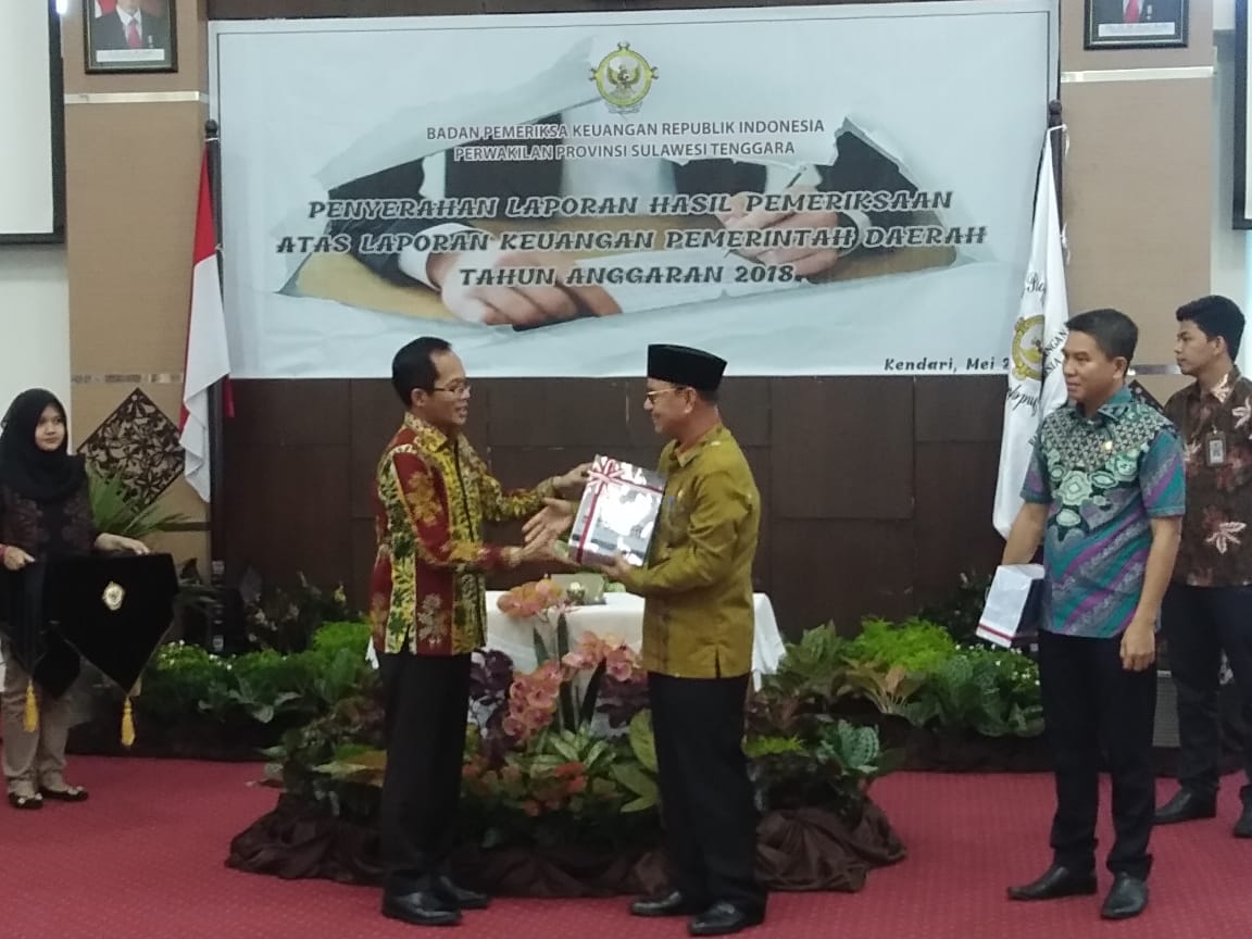 Penghargaan tersebut diterima langsung oleh Bupati Konsel, H. Surunuddin Dangga, ST.,MM bersama Ketua DPRD, Irham Kalenggo, S.Sos.,M.Si, pada acara Penyerahan Laporan Hasil Pemeriksaan (LHP) atas Laporan Keuangan Pemerintah Daerah (LKPD) Tahun Anggaran 2018 di Kantor BPK RI Perwakilan Prov Sultra – Kota Kendari, Jum’at (24/5/2019).