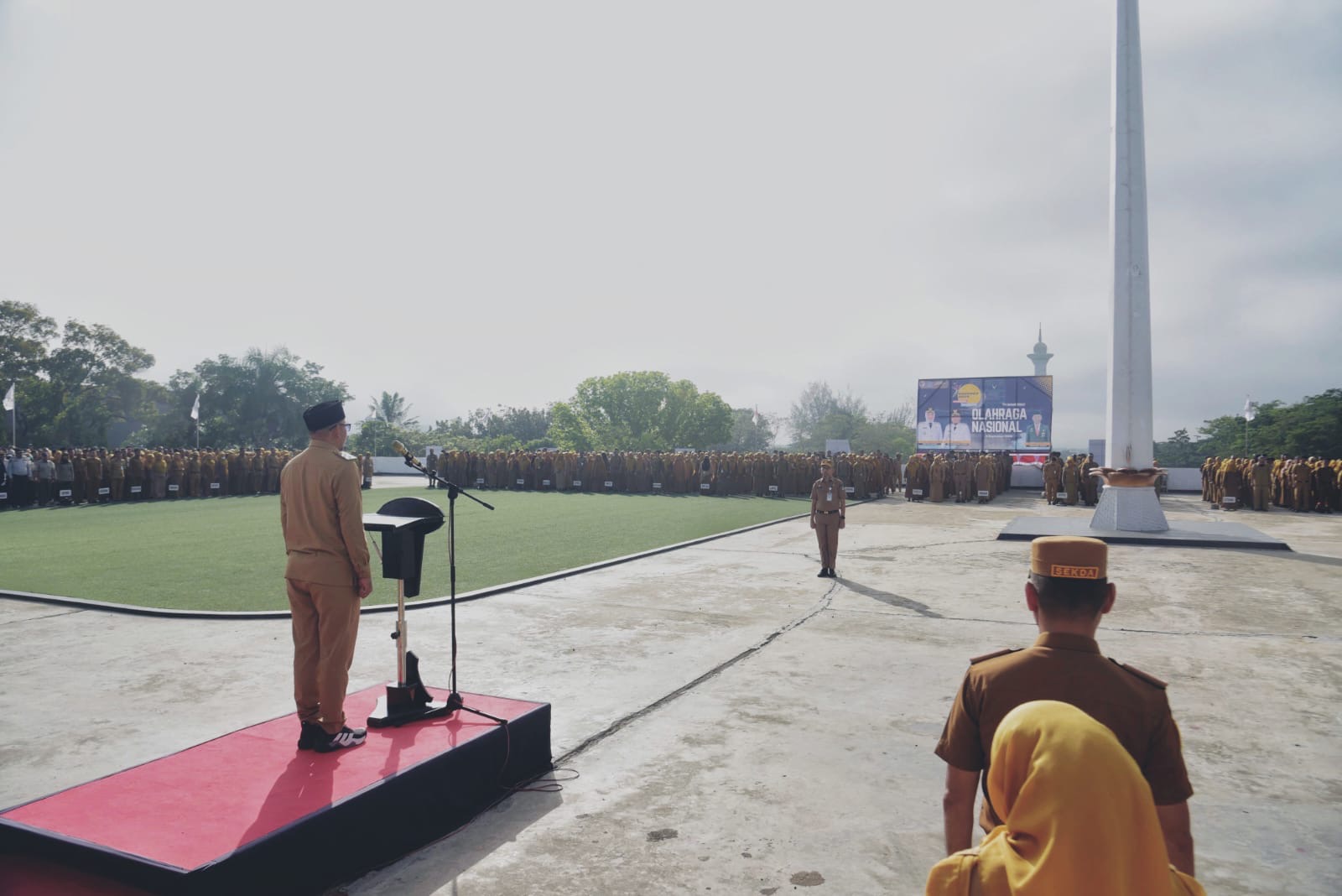Kendari, Sultrademo.co – Wakil Wali Kota Kendari, Sudirman, memimpin upacara peringatan Hari Olahraga Nasional (Haornas) ke-42 yang dilaksanakan pada Selasa (9/9/2025) di Lapangan Upacara Balai Kota Kendari, dihadiri seluruh aparatur sipil negara (ASN) Pemkot Kendari.