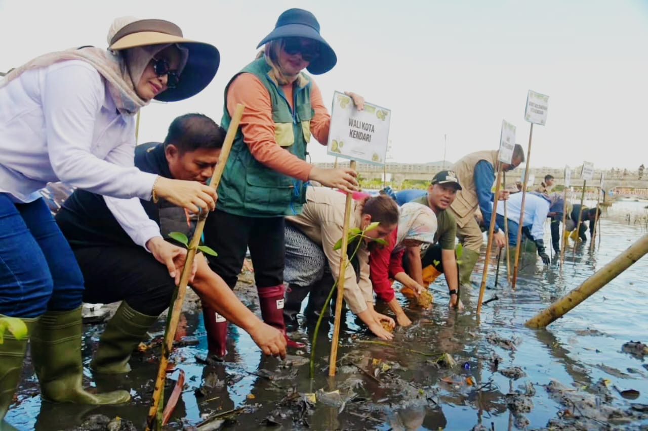 Kendari, Sultrademo.co — Dalam rangka memperingati Hari Mangrove Sedunia 2025, Pemerintah Kota Kendari menggelar penanaman mangrove serentak di kawasan pesisir Bungkutoko, Sabtu (26/7/2025).