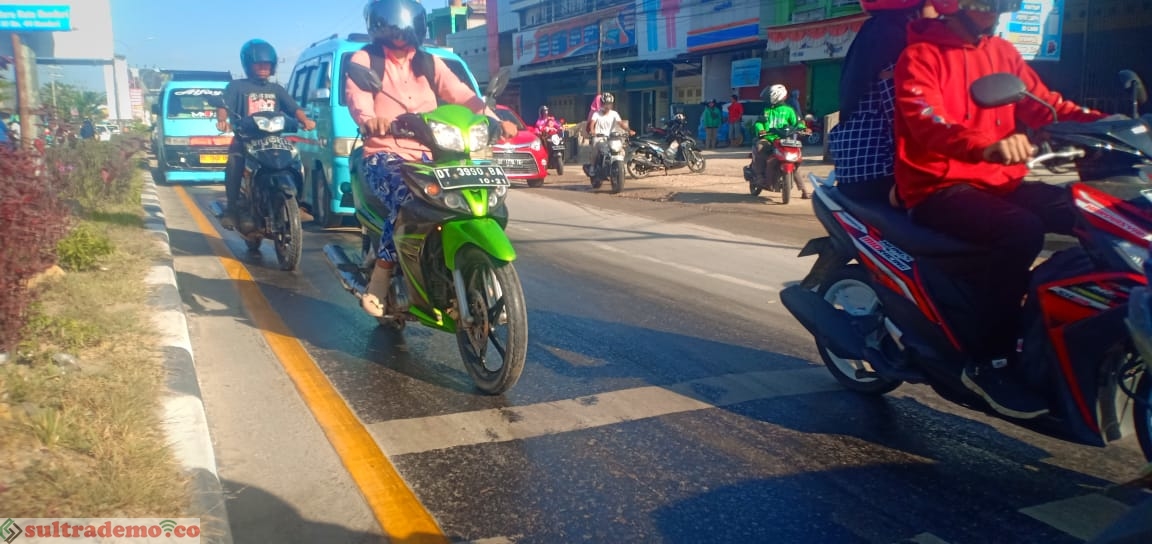 Kendari, Sultrademo.co– Sekitar pertigaan kampus baru Universitas Haluoleo (UHO) Kendari, tepatnya di Jalan MT Haryono, Kelurahan Kambu terdapat tumpahan Oli sepanjang 30 meter.