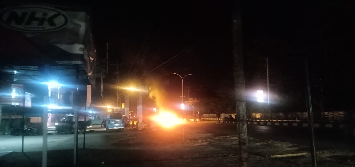 Pantauan jurnalis sultrademo.co, sekelompok orang tak dikenal (OTK) menutup jalan dari jl. Mt. Haryono menuju Jl. A.H Nasution dengan membakar kayu tepatnya di depan Gapura Jl. Lumba-lumba.