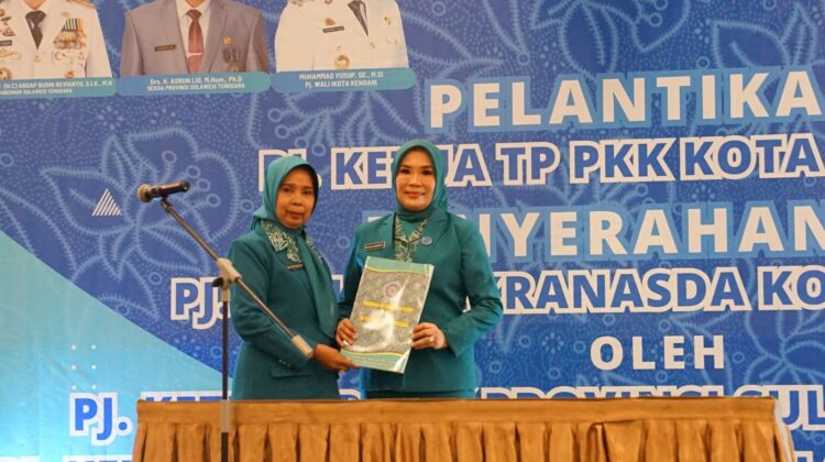 Kendari Sultrademo.co – Pj Ketua TP PKK Provinsi Sulawesi Tenggara, Wa Ode Munanah Asrun Lio melantik Pj Ketua Tim Penggerak PKK Kota Kendari, Ira Willis Kusumadoty.