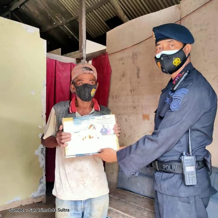 Selain di Kota Kendari, personel Sat Brimob Kompi I Batalyon C yang bermarkas di Kabupaten Kolaka Utara (Kolut), juga menggelar kegiatan yang sama membagikan paket sembako.