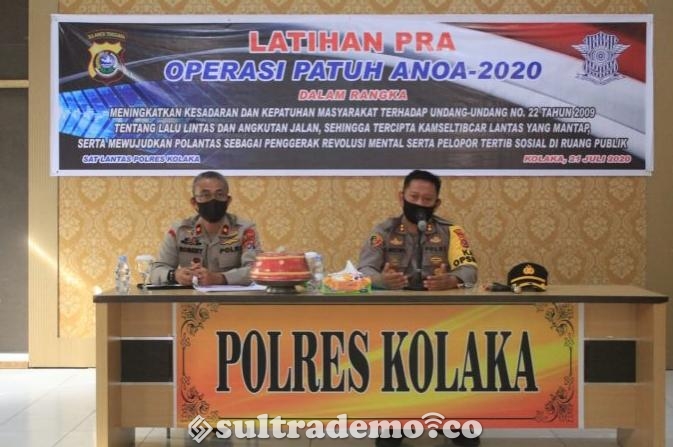 Kolaka,(21/07/20) Sultrademo.co – Jelang pelaksanaan Operasi Patuh Anoa-2020, Polres Kolaka menggelar Latihan Pra Operasi (Latpra Ops) di Aula Kemitraan Polres Kolaka.