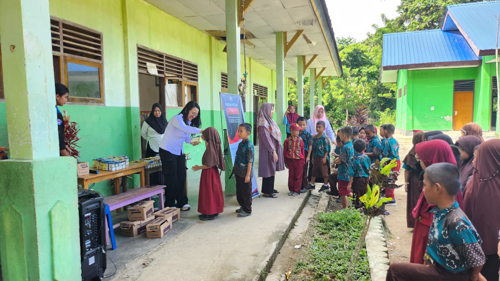 Tidak hanya itu lanjut epri, pihaknya juga membagikan susu dan makanan tambahan berprotein kepada siswa untuk menambah kebutuhan gizi anak.