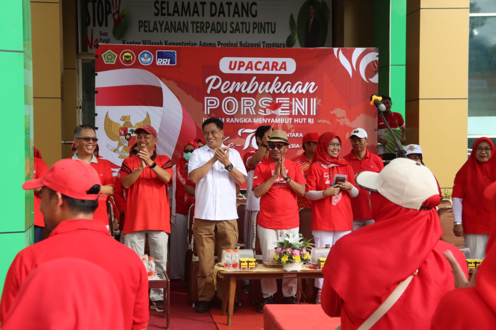 Kendari, Sultrademo.co – Menyambut HUT Kemerdekaan Republik Indonesia ke-79, Kantor Wilayah Kementerian Agama Provinsi Sulawesi Tenggara (Kanwil Kemenag Sultra) menggelar Pekan Olahraga dan Seni (Porseni) dengan menggandeng Densus 88 Anti Teror, Kantor Bahasa Sultra, dan LPP RRI Kendari.