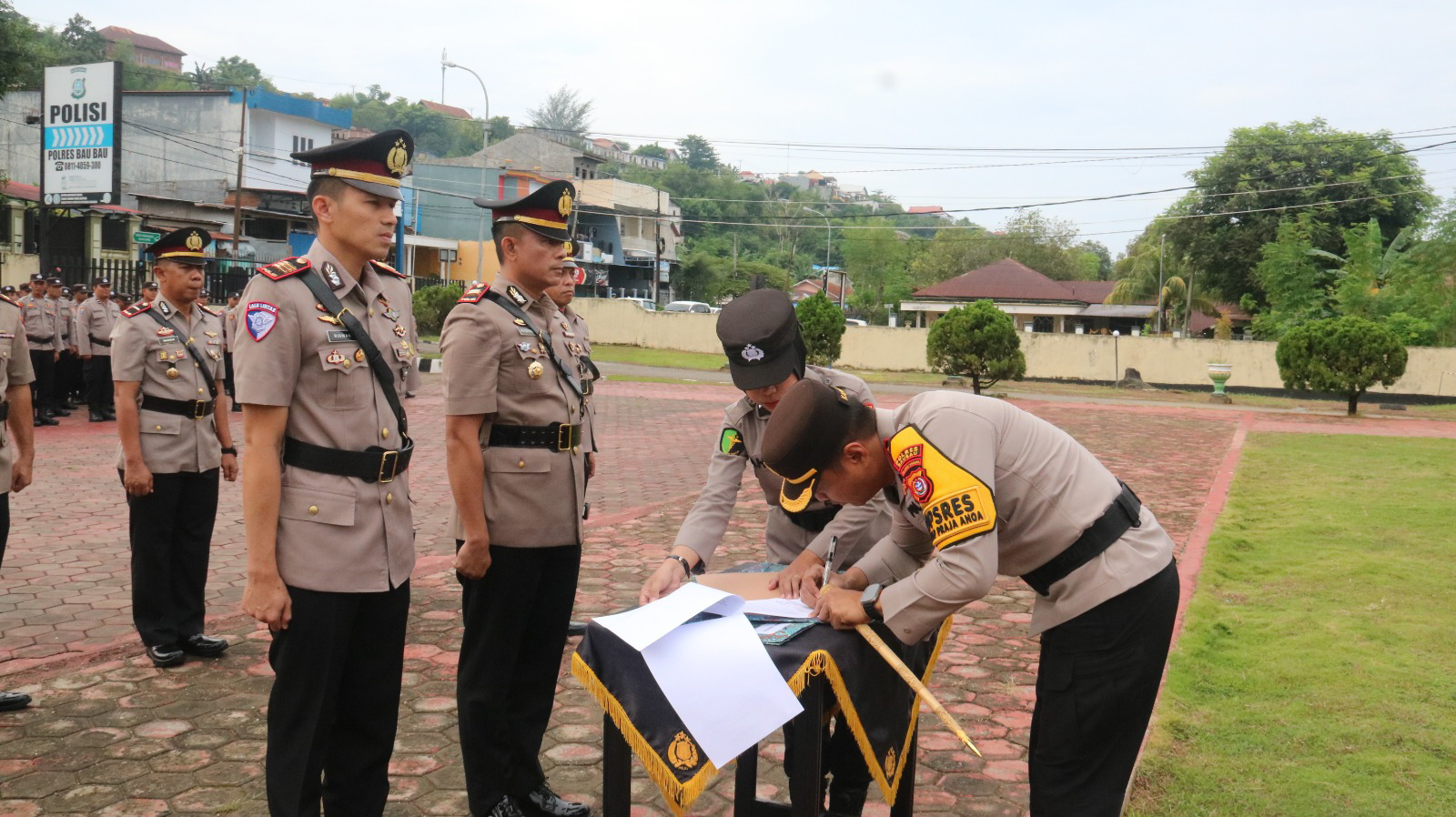 Upacara yang berlangsung di Lapangan Upacara Polres Baubau itu dihadiri oleh pejabat utama Polres, para kepala satuan (Kasat), kepala bagian (Kabag), kepala seksi (Kasi), para kapolsek, serta jajaran Bhayangkari Cabang Baubau.