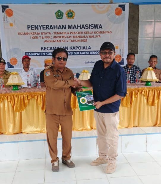 Konawe, Sultrademo.co — Pemerintah Kecamatan Kapoiala, Kabupaten Konawe, secara resmi menerima kehadiran 121 mahasiswa Universitas Mandala Waluya Kendari yang akan melaksanakan Kuliah Kerja Nyata Tematik dan Praktik Kerja Komunitas (KKN-T & PKK), Senin (21/4/2025). Prosesi penerimaan digelar di Balai Desa Lalimbue.