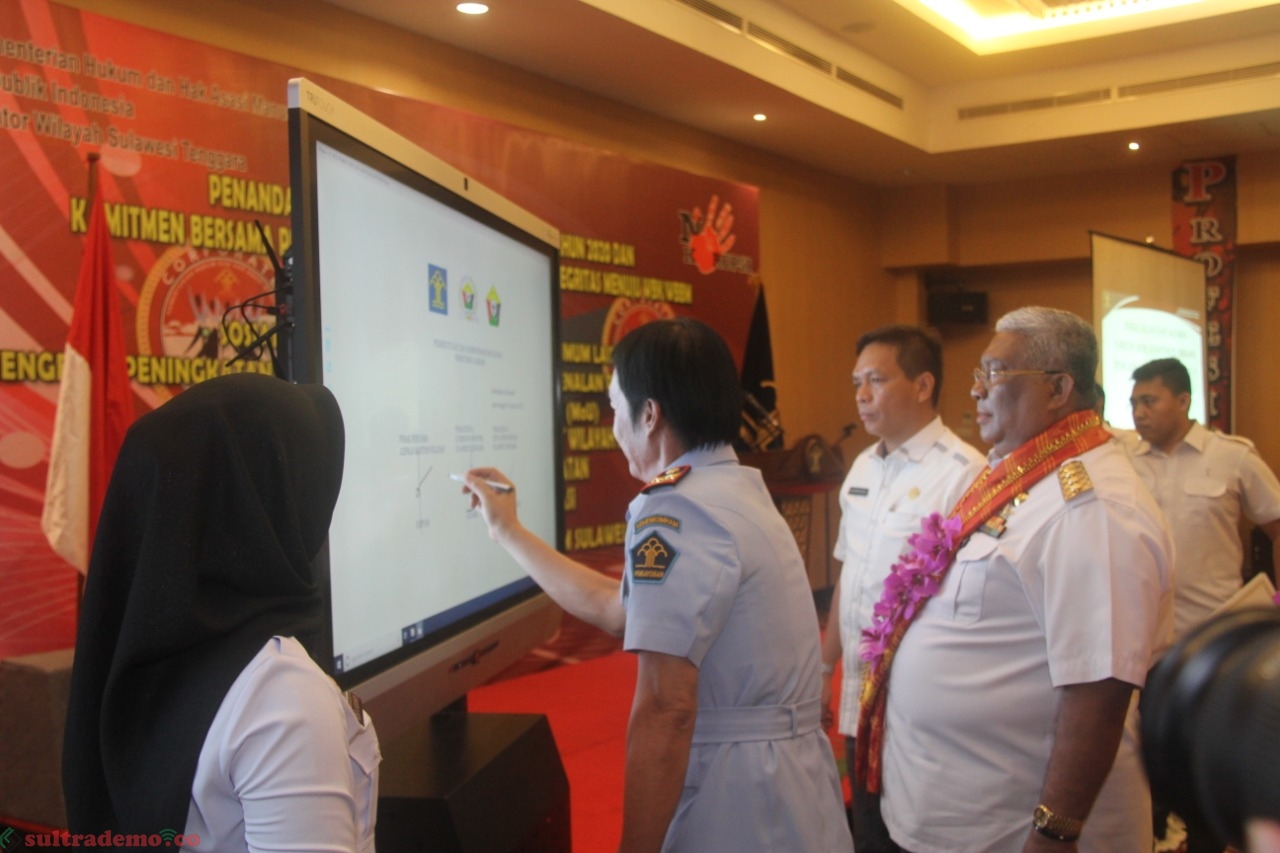 Kendari, Sultrademo.co– Mengawali tahun 2020, Kantor Wilayah Kementrian Hukum dan Hak Asasi Manusia (HAM) Provinsi Sulawesi Tenggara ( Sultra) menyelenggarakan Deklarasi Janji Kinerja dan Pencanangan Zona Integritas menuju Wilayah Bebas dari Korupsi ( WBK) dan Wilayah Birokrasi Bebas dan Melayani ( WBBM) bertempat disalah satu hotel di Kendari. Kamis, (15/1/2020)