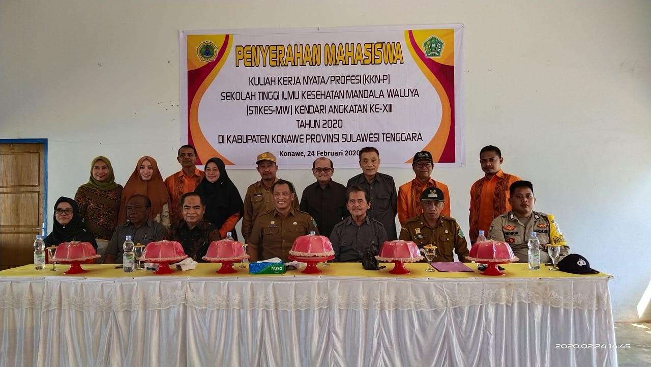 Kegiatan tersebut di hadiri sekda Konawe , ketua yayasan STIKES mandala waluya, ketua panitia KKN dan semua dosen pembimbing, camat wonggeduku ,camat wonggeduku barat dan camat Konawe serta kepala desa yang sempat hadir di acara penyambutan sekaligus penerimaan