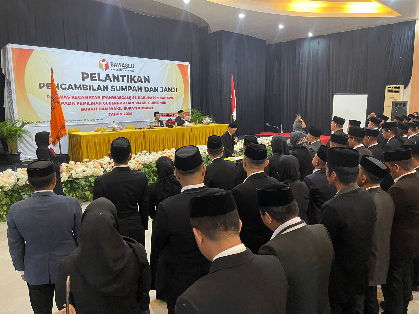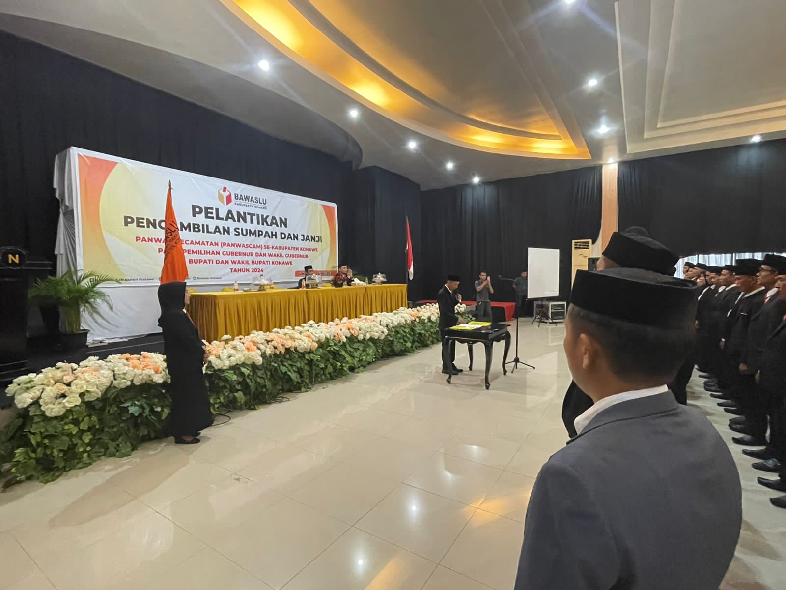 Pantauan Sultrademo.co, pelantikan Panwascam ini dihadiri oleh Ketua dan Anggota Badan Pengawas Pemilihan Umum (Bawaslu) Kabupaten Konawe, Kepala Sekretariat (Kasek) Bawaslu, Ketua Komisi Pemilihan Umum (KPU) Konawe, Asisten I perwakilan Pemkab, Pabung Konawe, serta para Panwascam se-Kabupaten Konawe.