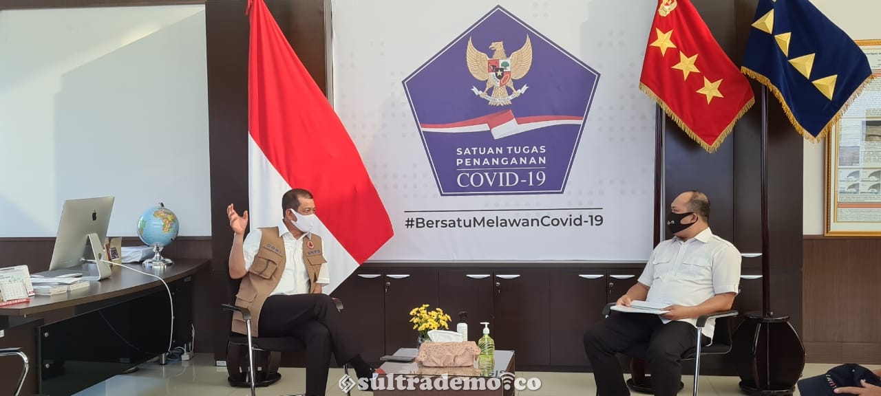 Jakarta, sultrademo.co – Letjend Doni Munardo Kepala BNPB sekaligus ketua gugus tugas pusat, menerima kunjungan Bupati Konawe Utara (Konut) H.Ruksamin dalam agenda kegiatan melaporkan penanganan pencegahan penyebaran Corona Virus Desease 19 (Covid-19), darurat banjir dan darurat abrasi, Senin (10/8/20)