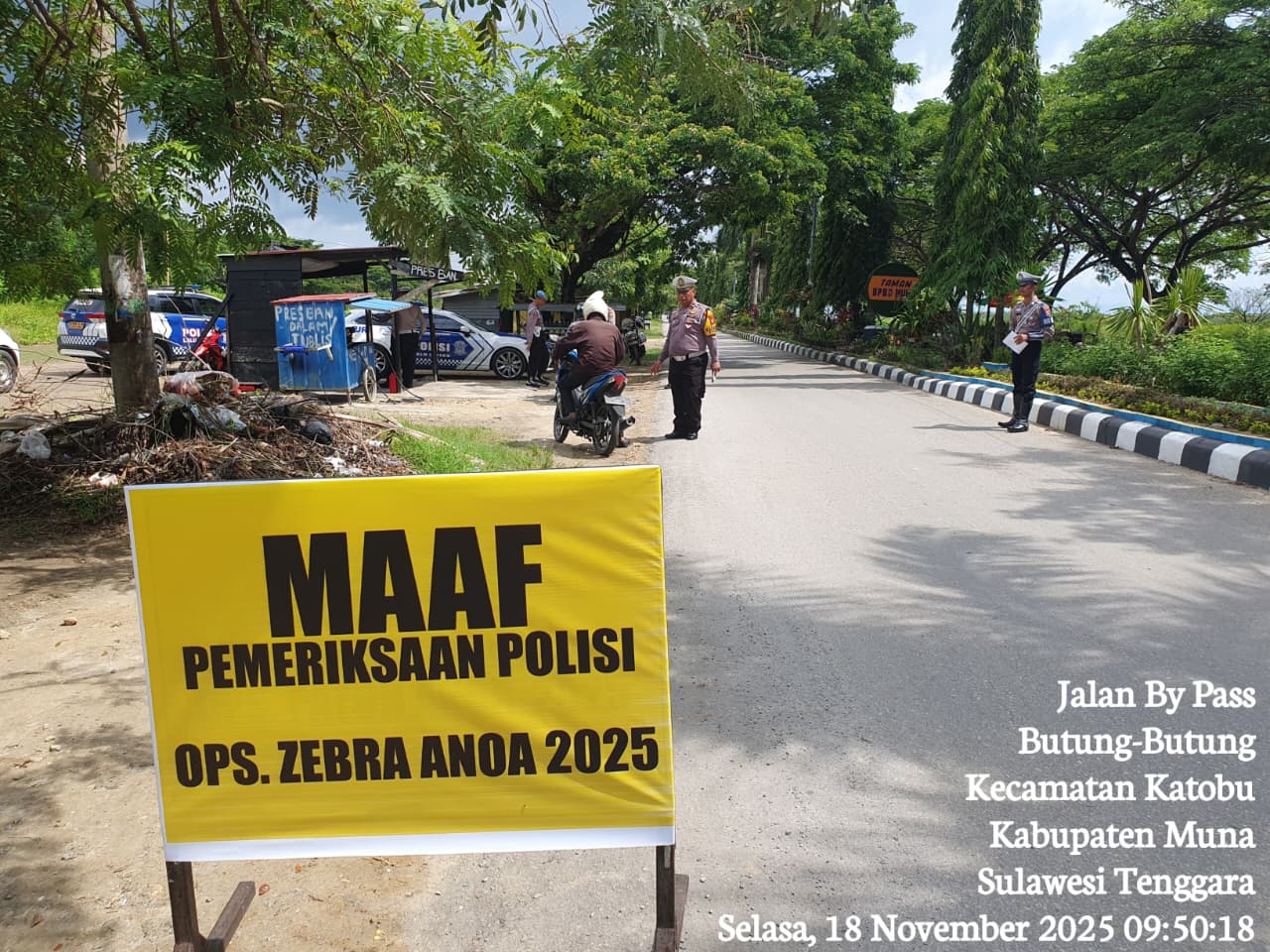 Muna, Sultrademo.co – Pelaksanaan Operasi Zebra Anoa 2025 di wilayah hukum Polres Muna telah memasuki hari ketiga pada Rabu (19/11/2025). Operasi ini dijadwalkan berlangsung selama dua pekan, mulai 17 s.d 30 November 2025.