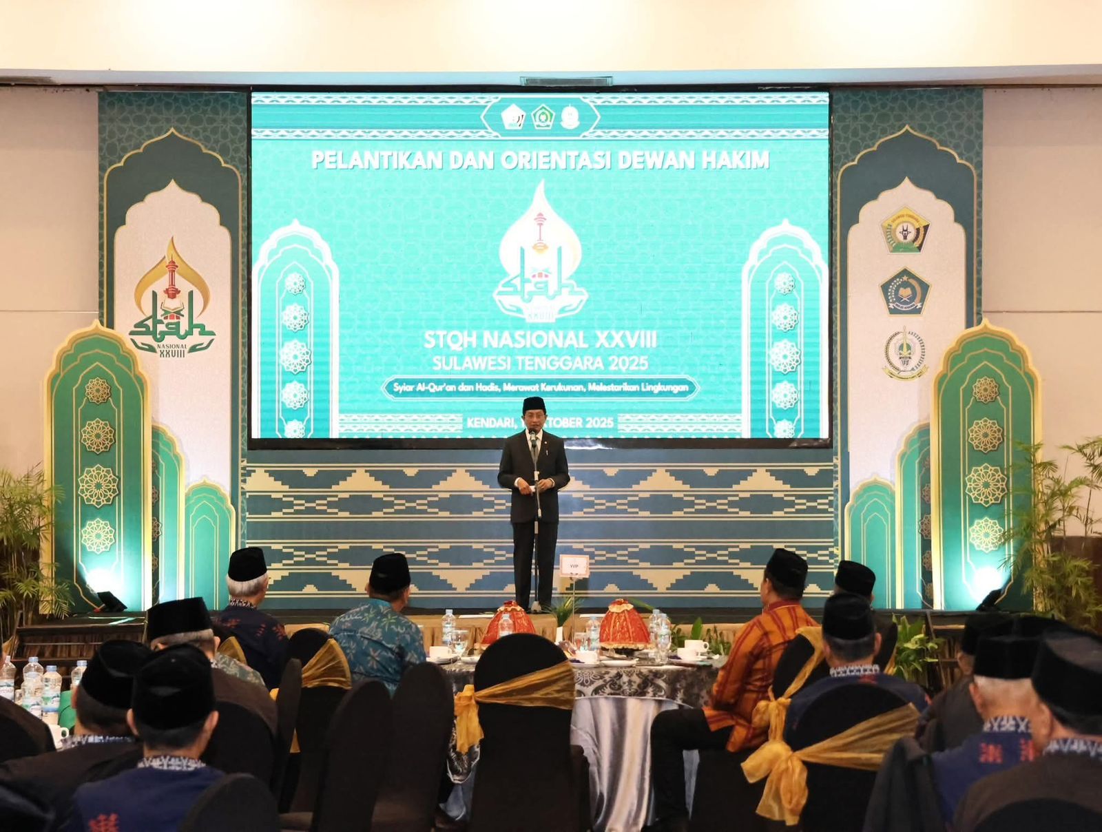 Kendari, Sultrademo.co – Gagasan besar kembali lahir dari Menteri Agama (Menag) Republik Indonesia, Nasaruddin Umar, Dalam sambutannya pada Pelantikan Dewan Hakim dan Dewan Pengawas STQH Nasional XXVIII di Hotel Claro Kendari, Sabtu (11/10/2025), Menag membuka wacana penyatuan dua ajang bergengsi umat Islam di Indonesia: STQH (Seleksi Tilawatil Qur’an dan Hadis) dan MTQ (Musabaqah Tilawatil Qur’an).