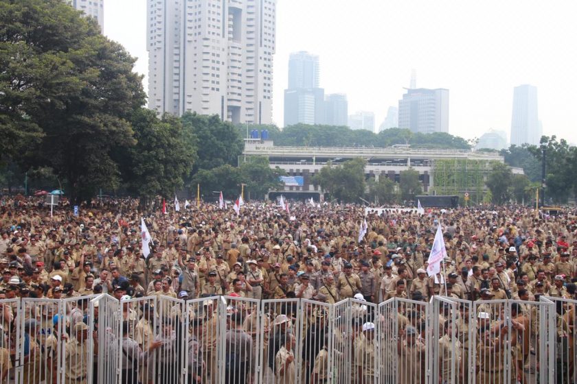 Acara tersebut dihadiri sekitar 20.950 orang bertujuan menyalurkan aspirasi meminta kepada pemerintah untuk segera merealisasikan pemberian penghasilan atau gaji kepada para Perangkat Desa setara dengan penghasilan atau gaji ASN Golongan II/a.