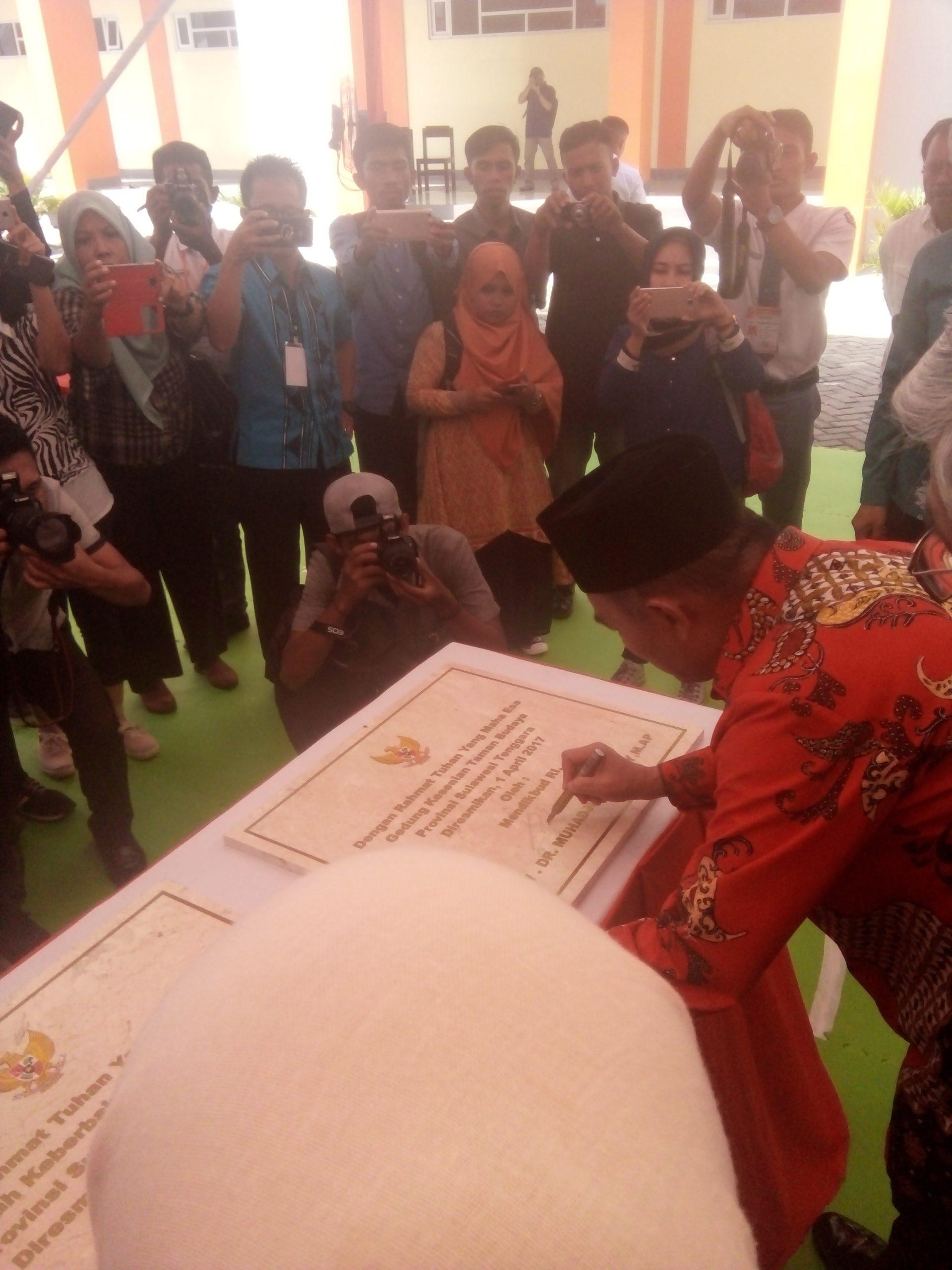 Kendari, (SultraDemoNews)- Dalam rangka kunjungan kerja, Menteri Pendidikan dan Kebudayaan Republik Indonesia, Muhadjir Effendy resmikan Sekolah Keberbakatan Olahraga (SKO) dan Gedung Kesenian Taman Budaya Provinsi Sultra, Sabtu, 1 April 2017.