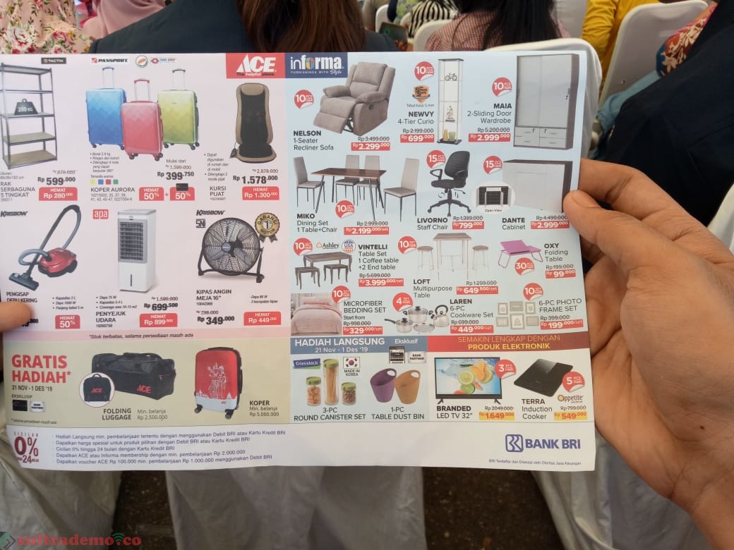 Kendari, Sultrademo.co – Memeriahkan pembukaan toko Ace dan Informa di Kendari, yabg berlokasi di Gedung Ace-Informa (ex Rabam), Jalan Jend. Ahmad Yani No. 26, Kemdari, beragam penawaran menarik dihadirkan seperti “Super Special” dan “Hot Deals yaitu harga hemat.
