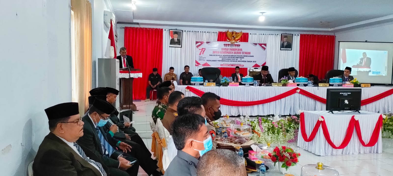 Kegiatan Paripurna dalam rangka memperingati HUT ke 77 Negara Republik Indonesia ini dilaksanakan di gadung aula DPRD Buton Tengah pada hari Selasa (16/08/2022)