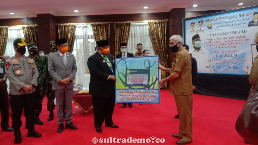 Gubernur Sultra pekan lalu telah menyerahkan bantuan masker dan wastafel kepada Dinas Pendidikan dan Kebudayaan Povinsi Sultra untuk disalurkan ke Sekolah.