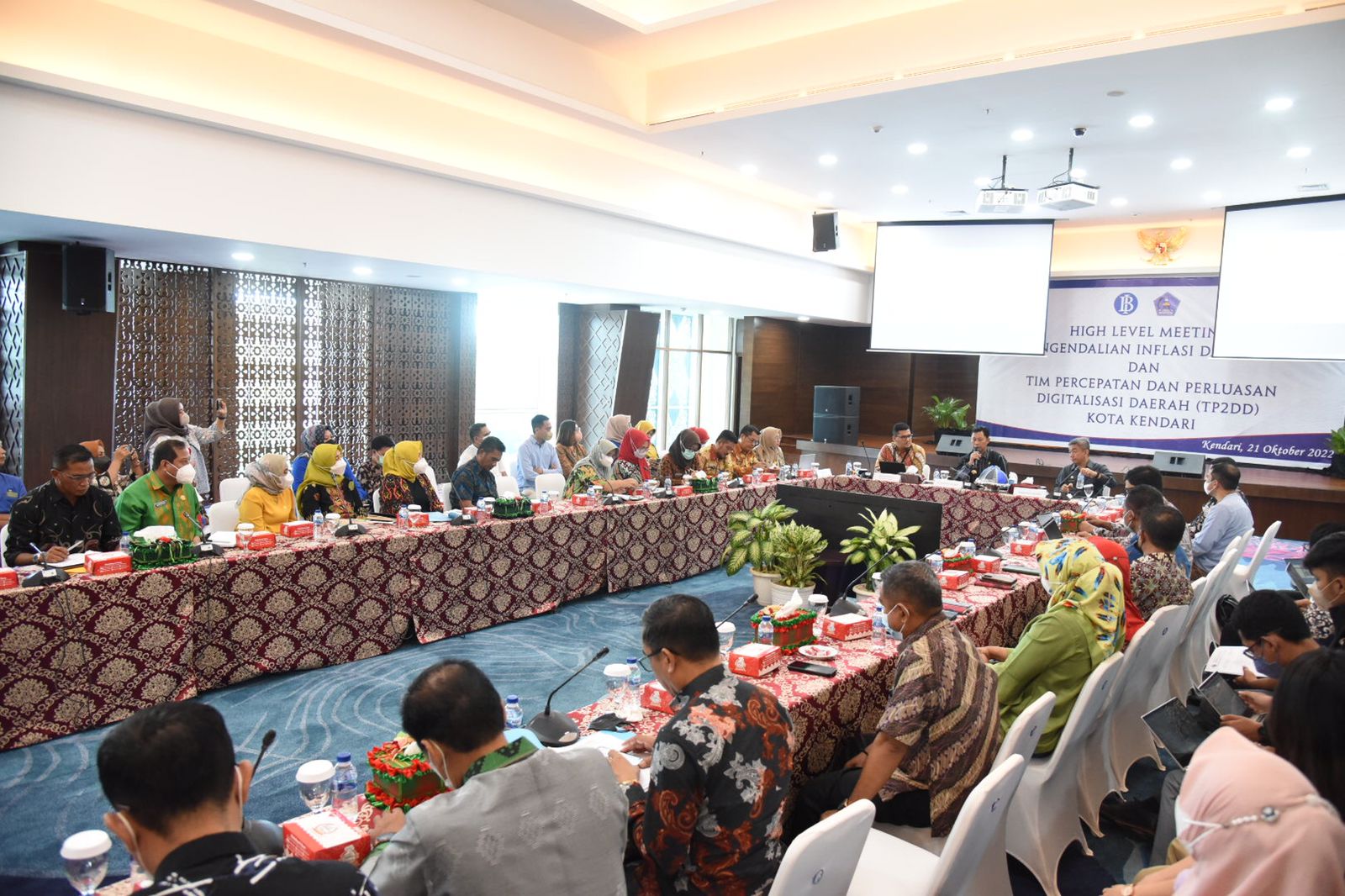 Dengan adanya kerjasama tersebut, Pemerintah Kota Kendari bersama Bank Indonesia Perwakilan Sultra, OJK dan Perbankan menggelar High Level Meeting Tim Pengendalian Inflasi Daerah (TPID) dan Tim Percepatan dan Perluasan Digitalisasi Daerah (TP2DD) Kota Kendari di Aula Wakatobi BI Sultra, Jumat (21/10/2022).